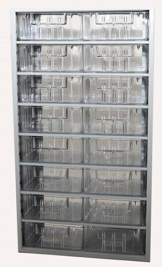 Hobby Box fiókos tároló rendszer. 16 db Közepes fiókkal A fiókhoz külön vásárolható elválasztó lemezek. A nagy fiók kereszt és hossz irányban osztható.