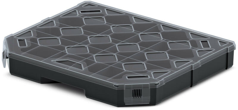 Qbrick System PRO Organizer 300 a PRO sorozat legnagyobb modellje. A más modellekbol ismert megoldások mellett, mint például a szabadalmaztatott Easy Access System, a fedél tömítése, a rendkívül ellenálló polikarbonát fedél, a poliamid oldalsó csatlakozók és az elülso rögzítok, valamint a masszív fogantyú - mélyebb testtel rendelkezik. A rendezo 8 mély, különbözo méretu
