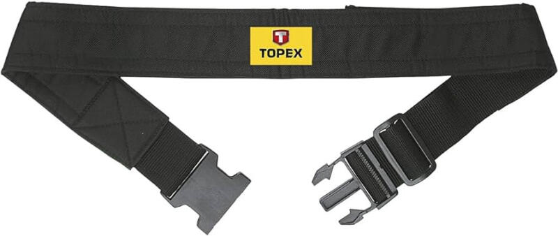 TOPEX öv szerszámtartókhoz és szegtáskákhoz. Műanyagból készült, 5 cm széles öv. Lehetővé teszi szerszámtartók, szegtáskák és szerszámakasztók rögzítését. Övhosszúság beállítást lehetővé evő csattal van felszerelve. A max. övhossz 114 cm. A TOPEX márka ezermestereknek készül. Öv szerszámtartókhoz és szegtáskákhoz, max. 1400 mm