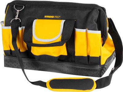 A praktikus Strend Pro nehéz szerszámtáska minden ezermester és barkács praktikus segítőtársa. Megerősített gumírozott aljjal rendelkezik, amely ellenáll a szennyeződésnek, jobb teherbírást és tartósságot biztosít. Számos oldalsó zsebet tartalmaz a kisebb szerszámok tárolására. Rögzíthető vállpánt a kényelmes hordozáshoz. Cipzárral zárható. Maximális teherbír