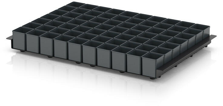 Felszerelés: 1. felszerelés Alapmérethez: 60 x 40 cm rács: 10x7 Anyaga: PS + ABS Index: B Feltöltés RAL 7016 70 x SB E 11 Euro láda nem a t... Felszerelés: 1. felszerelés Alapmérethez: 60 x 40 cm rács: 10x7 Anyaga: PS + ABS Index: B Feltöltés RAL 7016 70 x SB E 11 Euro láda nem a termék része.