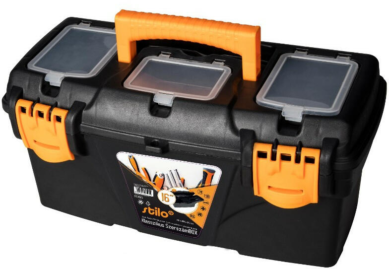 Stilo szerszámos láda Nem csak Profiknak!A Stilo STI1586 szerszámos láda, 18coll, méretei 432x250x238mm. Ezt a terméket akkor érdemes választani, ha a gyors szerelési munkánkat szeretne elvégezni specifikus szerszámokkal. A szerszámos láda funkcionalitása fontos, hogy a szerszámaink és csavarjaink a szortimenterben rendezettek legyenek, és mindig kézre álljanak. A felszerelt sz