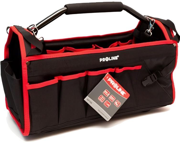 30 zseb (5 belsõ 13 külsõ, 12 fúróknak és hegyes tárgyaknak) Állítható hosszúságú vállra akasztható szíj, rozsdamentes acél fogantyú puha béléssel bevonva, nyitott felépítésű Rendkívüli ellenállású POLIESTER 600 D anyag Figyelem: A táska szerszámok nélkül van forgalmazva!