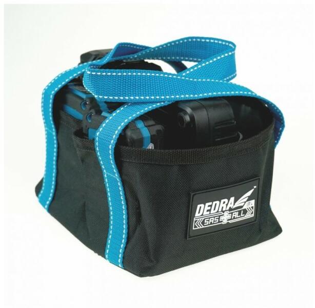 A SAS + ALL rendszerből származó akkumulátorok és töltők szállítására tervezett táska / tok. Tartós anyagból és fogantyúként funkcionáló hevederekből készült. A könnyű súly és a felhasznált anyag lehetővé teszi a táska könnyű tárolását bárhol. A burkolat lehetővé teszi például 1 töltő és legfeljebb 2 DED7034 / DED7035 akkumulátor szállítását Táska,