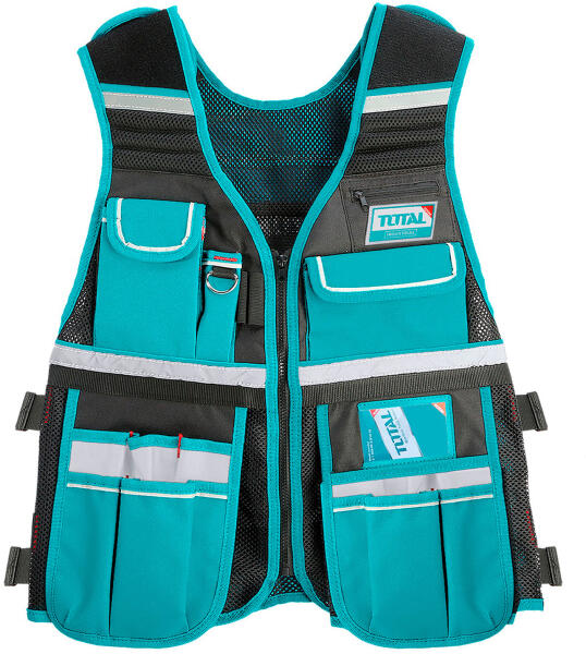 Szerszám mellény 01 / INDUSTRIAL (TTVT1601) Az alábbi szöveget fordítsa le szlovén nyelvről magyar nyelvre: TOTAL TTVT1601 eszköztartó mellény - teljes megoldás az eszközök könnyű hozzáféréséért a munka során. A mellény méretei 42x60x3 cm, maximális terhelhetősége 3 kg, így a szükséges összes eszköz mindig könnyen elérhető a mester számára. A mellényen 12 zseb