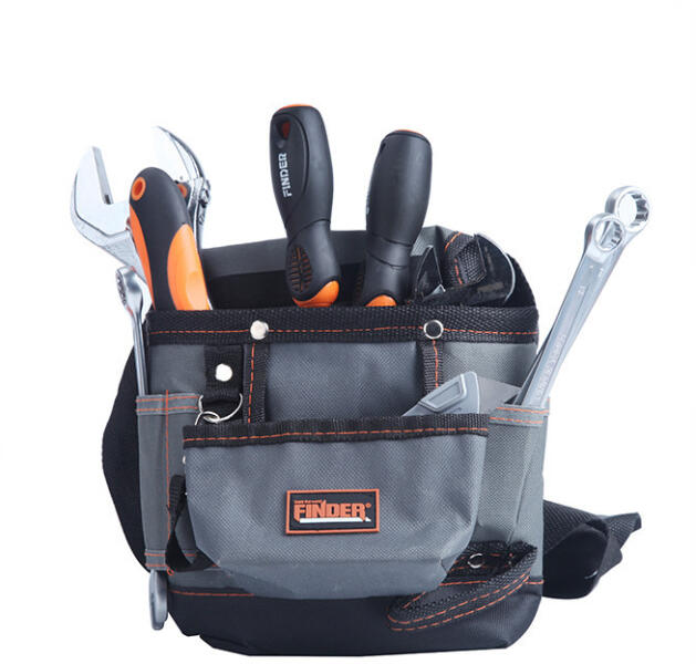 Strapabíró műanyagból készült szerszámtartó, nadrágszíjjal. Kalapácstartó füllel 2 nagy és 2 kisebb zsebbel a szerszámoknak.