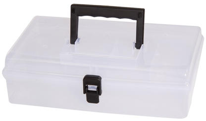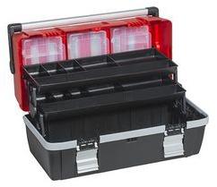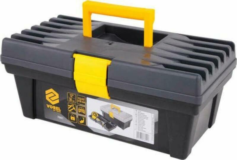 12 "-os szerszámos doboz egy kihúzható tálcával. Műanyagból. A masszív csat megakadályozza a nemkívánatos kinyílást a hordozás során. A doboz speciálisan kialakított oldalfogantyúval rendelkezik a könnyű hordozhatóság érdekében. Különféle tárgyak, például szerszámok, horgász kiegészítők stb. Kényelmes szállítására szolgál.