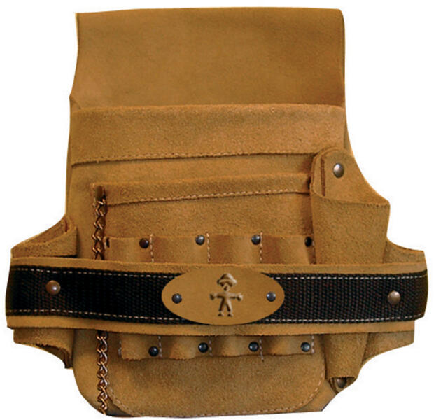 SZERSZÁMOSTÁSKA VILLANYSZERELŐKNEK VEZETÉKTARTÓVAL: 1,5 mm vastag, erős marhabőr alapanyag varrott plusz szegecselt, szakadásbiztos illesztések szerszámtartók, mérőszalagtartó, bőr akasztófülek 5 cm széles, csatos derékhevederrel vagy dupla vastagságú bőrszíjjal GAN78520: villanyszerelőknek, saját vezeték és szerszámtartókkal