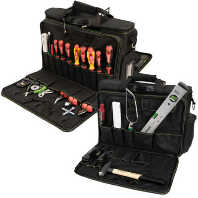 Nagy kapacitású szerszámtáska. Könnyű és tartós. Vízálló, minden körülmények között használható.
