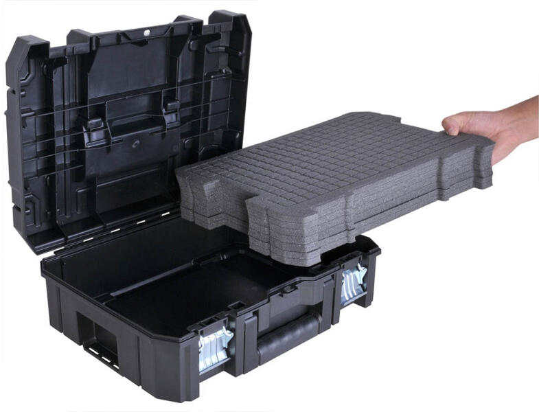 IP54 WATERSEAL – Víz- és porvédelmet biztosít a dobozban lévő szerszámoknak és rögzítőknek. (csak az alacsony dobozmoduloknál) BELSŐ HABBETÉT – személyre szabható habbetét, az elektromos kéziszerszámok biztonságos szállításához. ZÁRHATÓ – lakattal (nem tartozék) a fokozott biztonság érdekében. ELSŐ ÉS FELSŐ FOGANTYÚK – így a doboz mindkét állásban hord