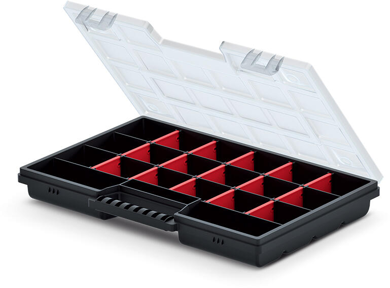 NOR12 szervezőUniverzális szervezők a Nor sorozatból állítható rekeszekkel - kényelmes megoldás, amely lehetővé teszi, hogy a rekeszek méretét és számát az Ön igényeihez igazítsa. Az átlátszó fedélnek köszönhetően anélkül láthatja, mi van benne, hogy ki kellene nyitnia, és a stabil fogantyúnak köszönhetően a szervező könnyen áthelyezhető egy másik helyre. Fiz