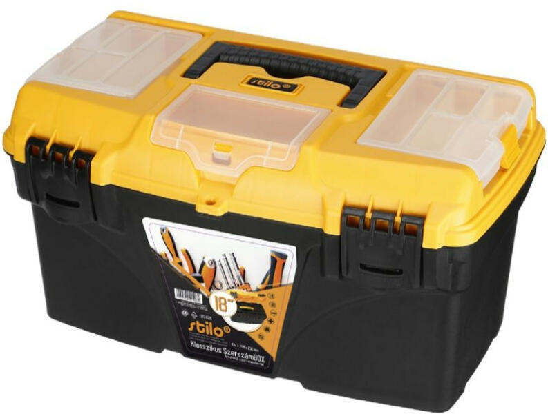 Stilo szerszámos láda Nem csak Profiknak!A Stilo STI1526 szerszámos láda, 18coll , levehető szortimenterrel, méretei 432x250x238mm. Ezt a terméket akkor érdemes választani, ha a gyors szerelési munkánkat szeretne elvégezni specifikus szerszámokkal. A szerszámos láda funkcionalitása fontos, hogy a szerszámaink és csavarjaink a szortimenterben rendezettek legyenek, és mindig kézr
