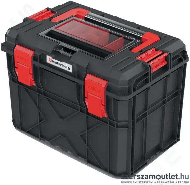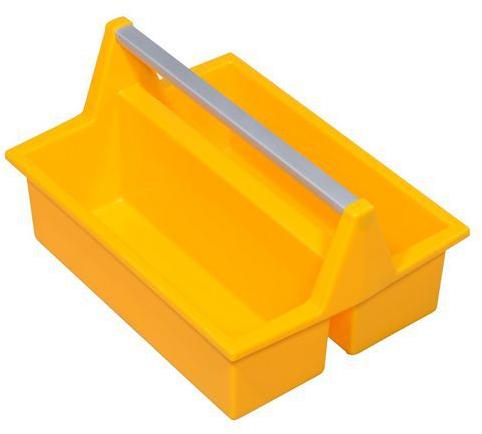 Sokcélú szerszámosláda szerszámokra és kisebb tárgyakra. Kemény műanyagból készült, alumínium fogantyúval ellátva. A szélein praktikus cm/hüvelyk mérőrész található. Két nagy szerszámtartó rekesszel.