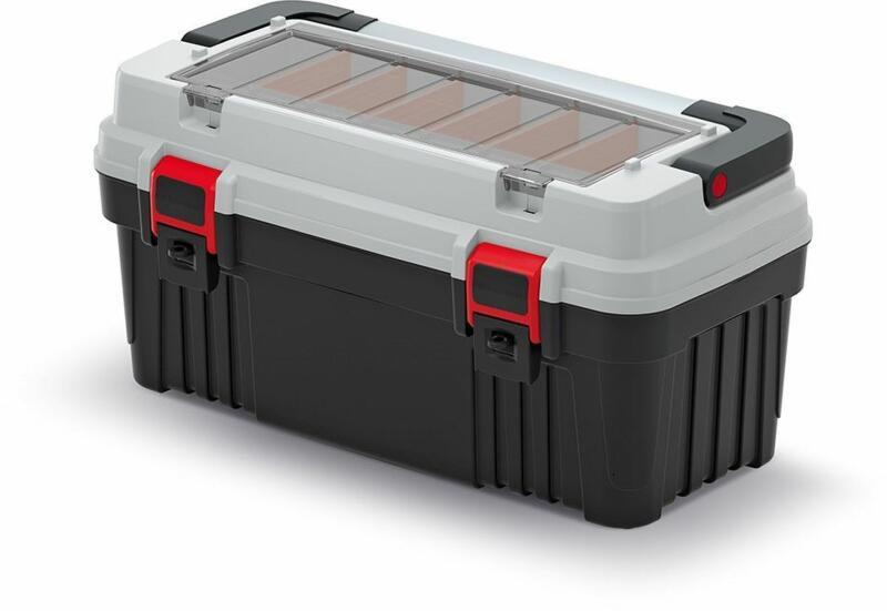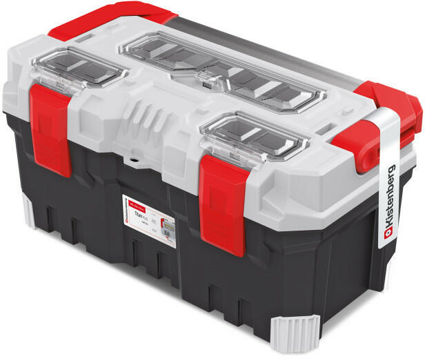 TITAN Plus multifunkcionális szerszámosláda: – Tartós polimer keverékből készült test. - Strapabíró alumínium fogantyú. – Tartós ABS rögzítők. – Átlátszó tartók polikarbonát borítással. – Elasztomer sarkok. – Belső tálca. – Nagy tárolókapacitás.