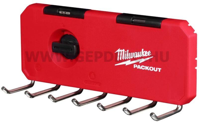 Milwaukee PACKOUT Akasztó sor, kicsi - 1 db PACKOUT 7 horgos akasztónk a legbiztonságosabb rögzítést biztosítja, ha PACKOUT fali lemezekkel párosítja, erősen tartja a falra szerelt PACKOUT megoldást. Ez a horog fém megerősítéssel készült, hogy megőrizze alakját terhelés közben, és optimalizálva van csavarkulcsokhoz, csavarhúzókhoz és egyebekhez. A teljesen fém kampós ki