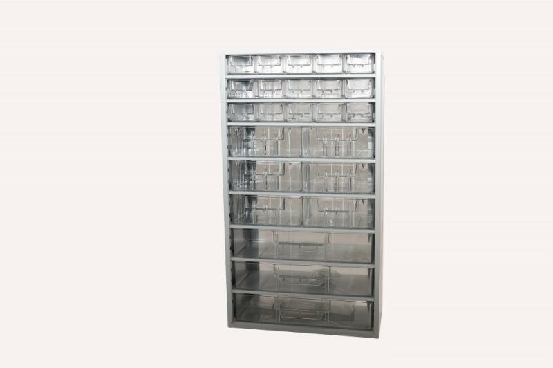 Hobby Box fiókos tároló rendszer! 15 kis fiók, 6 nagy fiók és 3 óriás fiók... Hobby Box fiókos tároló rendszer! 15 kis fiók , 6 nagy fiók és 3 óriás fiók . A fiókhoz külön vásárolható elválasztó lemezek. A nagy fiók kereszt és hossz irányban osztható, az óriás fiók kereszt irányba osztható. (3-4 részre) Standard kivitelnél a fiókok víztiszta sztirolból, a sz