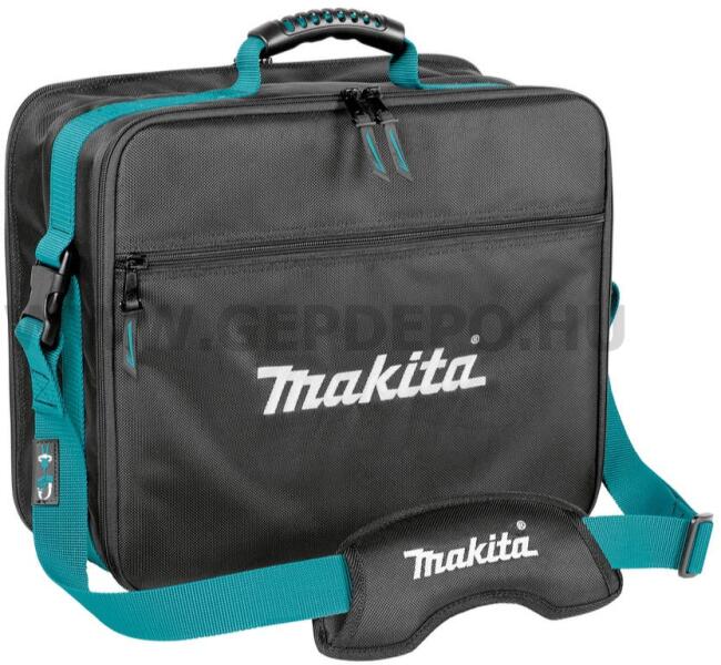 A táska egyik oldalán laptop és irodai kellékek tárolására alkalmas rekesz található. A hét nagy rekesz a laptop és a dokumentumok tárolására szolgál. A másik oldalon a táskában van hely a szerszámkészleteknek. 38 rugalmas szalag biztosít helyet a csavarhúzóknak, kulcsoknak, tollaknak stb. Minden Makita Strap-Belt-System logóval ellátott Makita táskához és tokhoz illesz