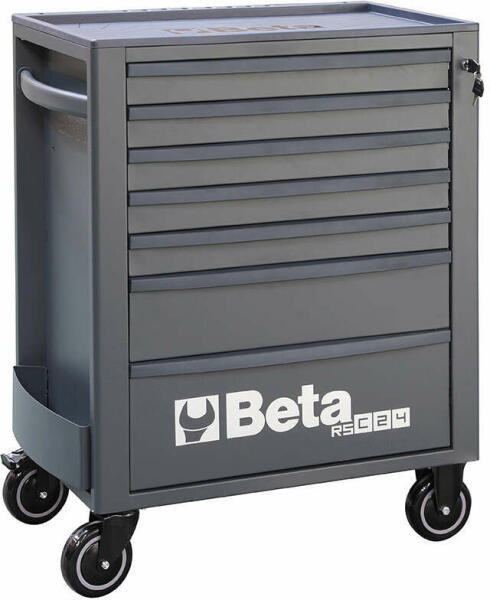 BETA RSC24/7-A 7 fiókos szerszámkocsi, antracit 7 fiókos szerszámkocsi A C24S szerszámkocsi evolúciója! Megerősített munkalap és számos praktikus kiegészítő 7 különböző színkombinációban kapható Új ABS erősítésű munkalap, az RSC22, RSC23, RSC23C és RSC23T szerszámszekrényhez. Fő jellemzők: 7 teljesen kivehető, teleszkópos, csapágyazott fiók, 588x367 mm: 5 fiók,