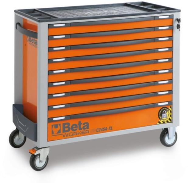 Bott Cubio fiókos szekrények 200 kg teherbírású fiókokkal és 100%-ban görgős csapágyakkal bővíthető. Magas hegesztett acél konstrukció 1,5 tonna teherbírásig, porszórt bevonattal. Központi zárrendszer és több nyitás blokkolása fiókok egyszerre. Ergonomikus fogantyúk feliratos szalaggal, zárás hengerzárral két kulccsal.