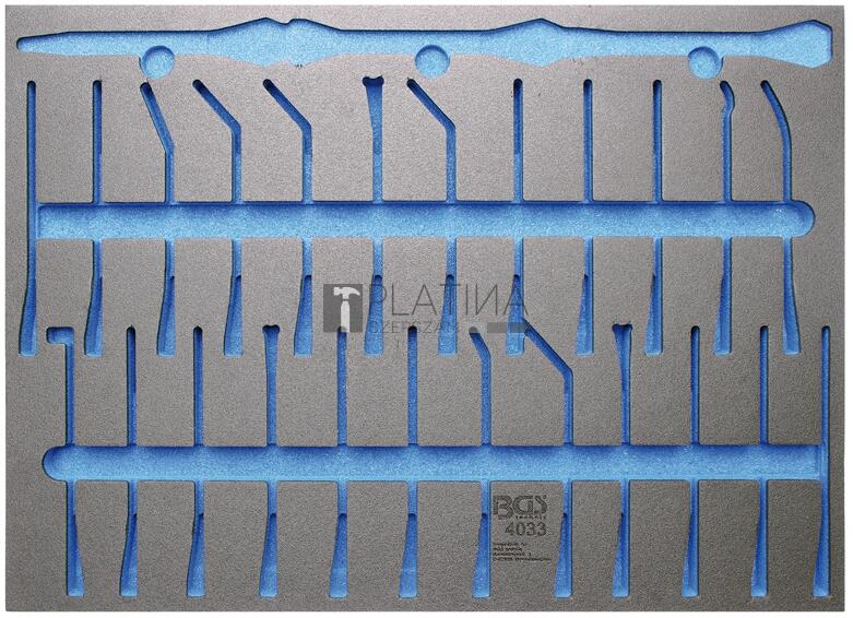 Angol nyelvű leírás (a magyar fordítást lásd lejjebb):tool tray made from high-resistance foamdimensions: 567 x 408 x 32 mmsuitable for all BGS workshop trolleyssuitable for BGS 4033Magyar fordítás (fordító automata segítségével):nagy ellenállóképességű habszerszám tálcaméretek: 567 x 408 x 32 mmminden BGS műhelykocsihozmegfelelő a BGS 4033 számáraA BGS Technic családi tu