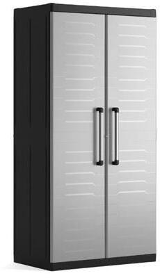 Karbantartásmentes szekrény sokoldalú felhasználásra garázsban, műhelyben és háztartásban, 4 polc egyszerű beszerelése, 1 polc teherbírása 15 kg, lehetőség lezárásra, magas ellenállás. Minőségi műanyag. Szürke. A karbantartásmentes Keter Detroit XL Utility tároló szekrény magas ellenállással a légköri hatásokkal és mechanikai elhasználódással szemben és lezár