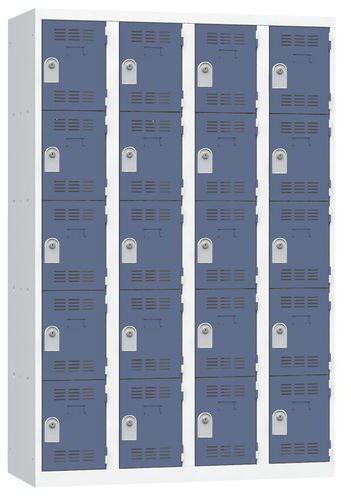 Többrekeszes hegesztett öltözőszekrény 0,7 mm vastagságú acéllemezből. Az egyes rekeszek külön-külön hengerzárral zárhatók, két tartozék kulccsal. A belső tér hatékony szellőzését a perforált ajtó biztosítja. Névcímke elhelyezhető.