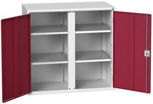 Fém műhelyszekrények polcokkal a hatékony használathoz az üzemekben és műhelyekben. A 75 kg teherbírású horganyzott polcok magassága 25 mm-es lépésekben állítható. Hegesztett acélszerkezet, porszórt felülettel. Megerősített lengőajtók hárompontos kivitelben hengerzár két kulccsal .