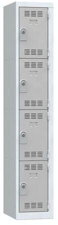 Többrekeszes hegesztett öltözőszekrény 0,7 mm vastagságú acéllemezből. Az egyes rekeszek külön-külön hengerzárral zárhatók, két tartozék kulccsal. A belső tér hatékony szellőzését a perforált ajtó biztosítja. Névcímke elhelyezhető.