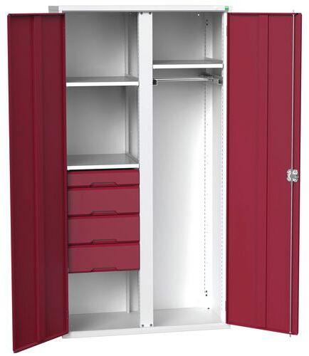 Fém szekrények speciális üzemeltetési célokra - típustól függően, polcokkal, fiókokkal, központi válaszfallal vagy akár akasztórúddal felszerelve. Horganyzott polcok 75 kg teherbírással, 25 mm-es lépésekben állítható magassággal. Fiókok 75 kg teherbírás és 100%-os kinyúlás gördülőcsapágyakon. Hegesztett acélszerkezet, porszórt bevonat. Megerősített szárnyas a