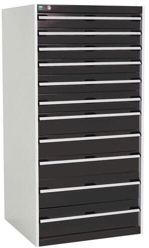 Bott Cubio fiókos szekrények 75 kg-os teherbírású, görgőscsapágyakon 100%-ban bővíthető fiókokkal. Magas hegesztett acélszerkezet, akár 1,5 tonna teherbírással, porszórt bevonattal. Központi zárrendszer és több nyitás blokkolása fiókok egyszerre. Ergonomikus fogantyúk feliratos szalaggal, zárás hengerzárral két kulccsal.