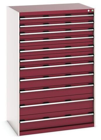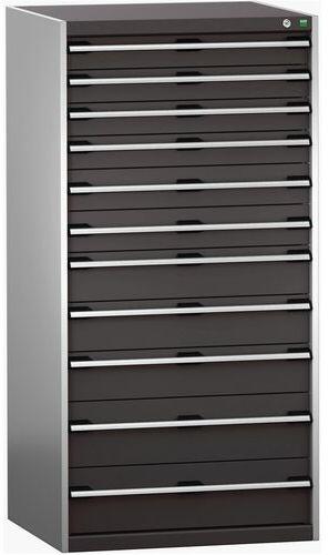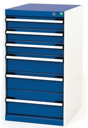 Bott Cubio fiókos szekrények 75 kg-os teherbírású, görgőscsapágyakon 100%-ban bővíthető fiókokkal. Magas hegesztett acélszerkezet, akár 1,5 tonna teherbírással, porszórt bevonattal. Központi zárrendszer és több nyitás blokkolása fiókok egyszerre. Ergonomikus fogantyúk feliratos szalaggal, zárás hengerzárral két kulccsal.
