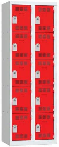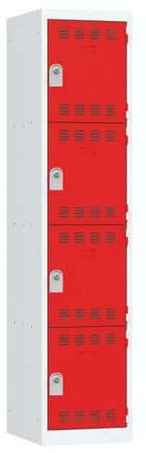 Többrekeszes hegesztett öltözőszekrény 0,7 mm vastagságú acéllemezből. Az egyes rekeszek külön-külön hengerzárral zárhatók, két tartozék kulccsal. A belső tér hatékony szellőzését a perforált ajtó biztosítja. Névcímke elhelyezhető.