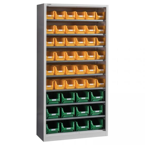 "Magasság1980 mmSzélesség1000 mmMélység420 mmSúly70 kgPolcok száma8 dbTeherbírás polconként50 kgAlapanyagI. osztályú acéllemezAlapszínRAL 7035 / világosszürkeFestéselektrosztatikus szinterezés / porszórásTermékkódEXPERT OPEN C-48Dobozos tárolószekrényünk ajtó nélküli verziója még több helyet spórol és még praktikusabban használható. Kis helyen is kényelmesen e