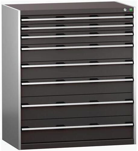 Bott Cubio fiókos szekrények 75 kg-os teherbírású, görgőscsapágyakon 100%-ban bővíthető fiókokkal. Magas hegesztett acélszerkezet, akár 1,5 tonna teherbírással, porszórt bevonattal. Központi zárrendszer és több nyitás blokkolása fiókok egyszerre. Ergonomikus fogantyúk feliratos szalaggal, zárás hengerzárral két kulccsal.