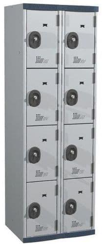 Vinco hegesztett öltözőszekrény fokozott biztonsággal a személyes tárgyak tárolására. Minden rekesz tartalmaz egy akasztórudat, két ruhaakasztót és egy rakodórészt. Hárompontos rendszerű forgóretesszel zárható, lakattal (nem tartozék). A szellőzőnyílásokkal ellátott ajtón névtábla elhelyezhető.