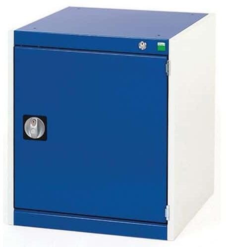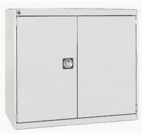 Fém műhelyszekrények polccal. Hegesztett acélszerkezet, porszórt bevonat. Központi hengerzárral zárható.