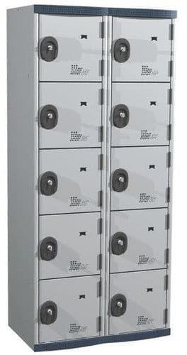 Hegesztett öltözőszekrény tartós, 0,6 mm vastagságú (a szabvány 0,8 mm-esnek megfelelő) profilozott acéllemezből. 120°-ban nyíló masszív ajtó. Perforált ajtó és szekrény a jobb nedvességelvezetés érdekében. Névcímke elhelyezhető. Hengerzárral, 2 tartozék kulccsal zárható.