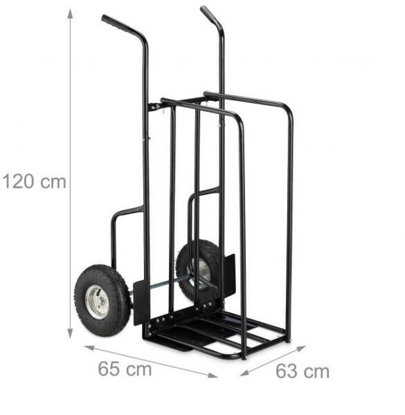 Tűzifa tárolókocsi XL fém Nagyméretű tűzifa fogantyúval Ideális szállításhoz vagy ideiglenes tároláshoz A hasábok egyszerűen egymásra rakhatók Kényelmes vezetés a gumiabroncsoknak és a fogantyúknak köszönhetően Strapabíró acél váz Tűzifa mérete és anyaga Méret: H x Sz x M: 120 x 63 x 65 cm Súly: 11,6 kg Max. 200 kg terhelhető Anyag: Acél és gumi Szín: fekete F