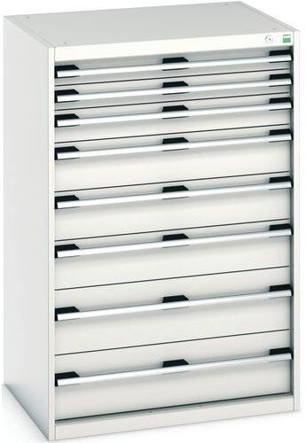 Bott Cubio fiókos szekrények 75 kg-os teherbírású, görgőscsapágyakon 100%-ban bővíthető fiókokkal. Magas hegesztett acélszerkezet, akár 1,5 tonna teherbírással, porszórt bevonattal. Központi zárrendszer és több nyitás blokkolása fiókok egyszerre. Ergonomikus fogantyúk feliratos szalaggal, zárás hengerzárral két kulccsal.