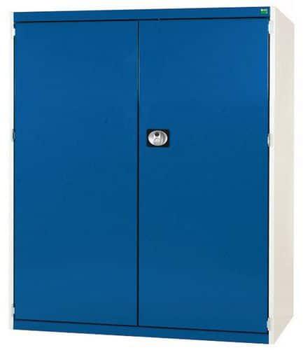Fém műhelyszekrények polcokkal, 160 kg teherbírással. Megerősített szárnyas ajtók perforált belső oldallal a szerszámok tárolására. Magas hegesztett acél konstrukció akár 1,5 tonna teherbírással, porszórt felülettel. Zárás központi zárral hengerzár két kulccsal. . 25 mm-es lépésekben állítható magasságú horganyzott polcok.