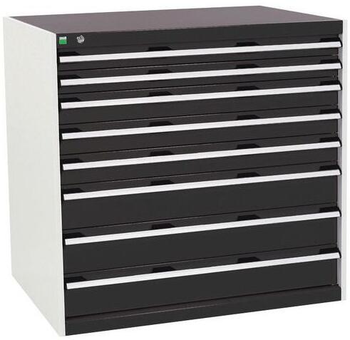Bott Cubio fiókos szekrények 200 kg teherbírású fiókokkal és 100%-ban görgős csapágyakkal bővíthető. Magas hegesztett acél konstrukció 1,5 tonna teherbírásig, porszórt bevonattal. Központi zárrendszer és több nyitás blokkolása fiókok egyszerre. Ergonomikus fogantyúk feliratos szalaggal, zárás hengerzárral két kulccsal.