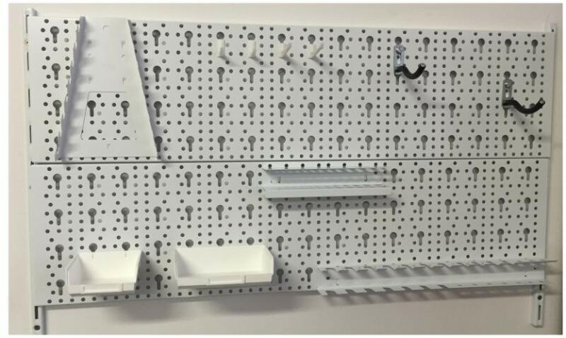 Praktikus szett a szerszámok rendezett tárolásához. A termék tartalma: 1 pár Perforált lemez fehér 800x200 mm 1 pár Falsín 500 mm egylyuksoros fehér