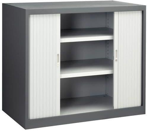 Porszórt hegesztett műhelyszekrény 1,2 mm vastag acéllemezből. 24 mm-es rácsban állítható polcokkal. Kétpontos tolórudas hengerzárral zárható.