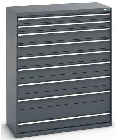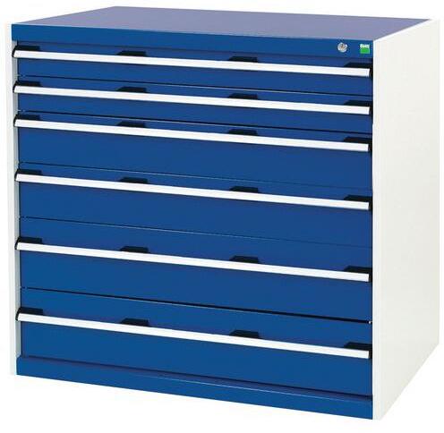 Bott Cubio fiókos szekrények 75 kg-os teherbírású, görgőscsapágyakon 100%-ban bővíthető fiókokkal. Magas hegesztett acélszerkezet, akár 1,5 tonna teherbírással, porszórt bevonattal. Központi zárrendszer és több nyitás blokkolása fiókok egyszerre. Ergonomikus fogantyúk feliratos szalaggal, zárás hengerzárral két kulccsal.