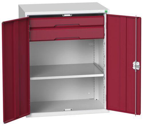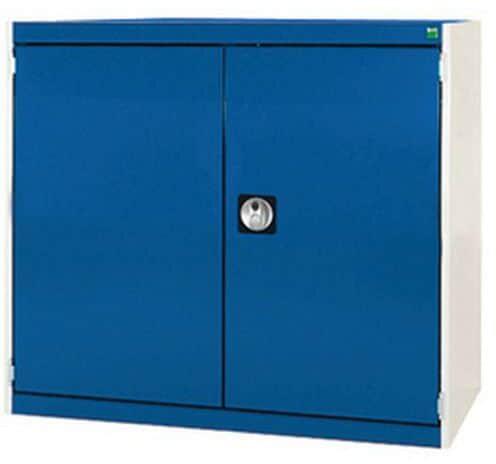 Fém műhelyszekrények polcokkal 100 kg teherbírással. Megerősített szárnyas ajtók perforált belső oldallal a szerszámok tárolására. Magas hegesztett acélszerkezet 1,5 tonna teherbírással, porszórt felülettel. Zárás központi zárral hengerzár két kulccsal. . 25 mm-es lépésekben állítható magasságú horganyzott polcok.
