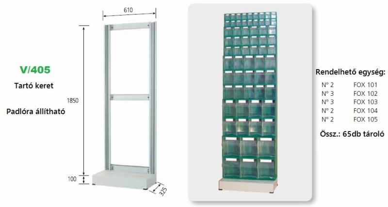 FOX moduláris műanyag tároló dobozokhoz készült FÉM tartó szerkezet, amely falra vagy akár a padlóra is rögzíthető. A szett tartalma: V/405 keret