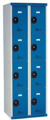 Többrekeszes hegesztett öltözőszekrény 0,7 mm vastagságú acéllemezből. Mindegyik rekesz egy akasztórudat tartalmaz két ruhaakasztóval (forgóretesszel, lakattal zárhatók - a lakat nem tartozék). A belső tér hatékony szellőzését a perforált ajtó biztosítja. Névcímke elhelyezhető.