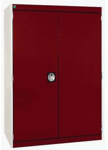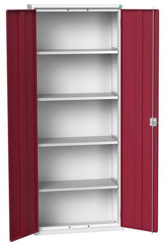 Fém műhelyszekrények polcokkal 100 kg teherbírással. Megerősített szárnyas ajtók perforált belső oldallal a szerszámok tárolására. Magas hegesztett acélszerkezet 1,5 tonna teherbírással, porszórt felülettel. Zárás központi zárral hengerzár két kulccsal. . 25 mm-es lépésekben állítható magasságú horganyzott polcok.