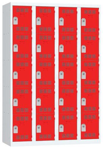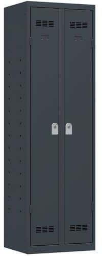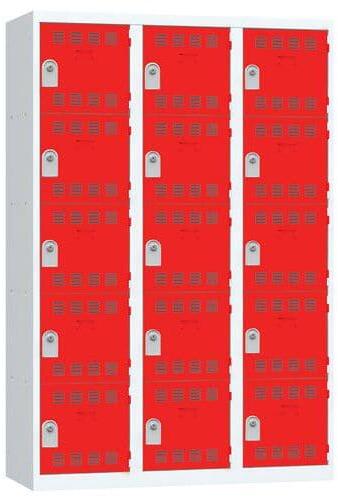 Többrekeszes hegesztett öltözőszekrény 0,7 mm vastagságú acéllemezből. Az egyes rekeszek külön-külön hengerzárral zárhatók, két tartozék kulccsal. A belső tér hatékony szellőzését a perforált ajtó biztosítja. Névcímke elhelyezhető.