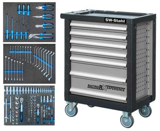 SW STAHL Z3703 Szerszámkocsi, teli -7 fiókos műhelykocsi -(leírása: lásd a 07050L cikkszámú terméket) " Szerelõ-készlet " 3 fiók feltöltve összesen -207 db prémium-minõségű szerszámmal, szivacs betétekben -Tartalmazza az alábbi feltöltött fiókbetéteket: -Z3010-1 - dugókulcs- és csavarhúzó-fejek, 171 részes -Z3010-2 - csavarkulcsok, 24 részes -Z3010-3 - fogók és csa